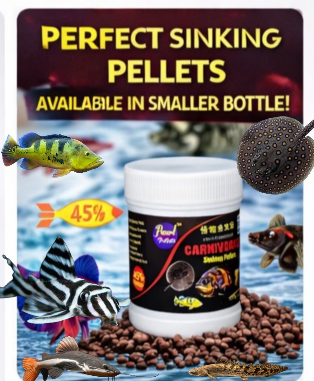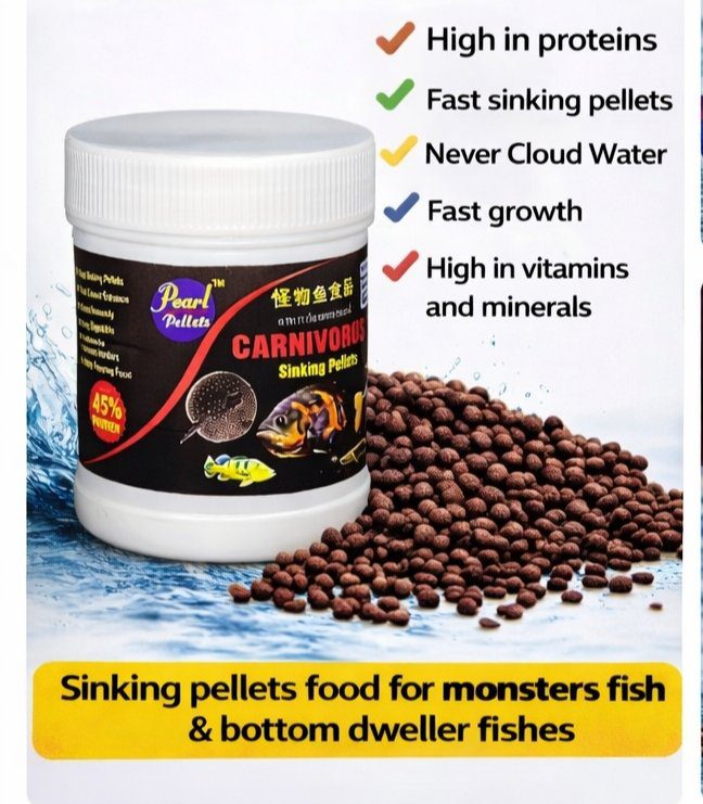 Pearl Pellets Carnivorous Sinking Pellets are specially formulated for monster fish and carnivorous aquarium species. This high-protein diet supports fast growth, strong immunity, and vibrant health for large predatory fish.