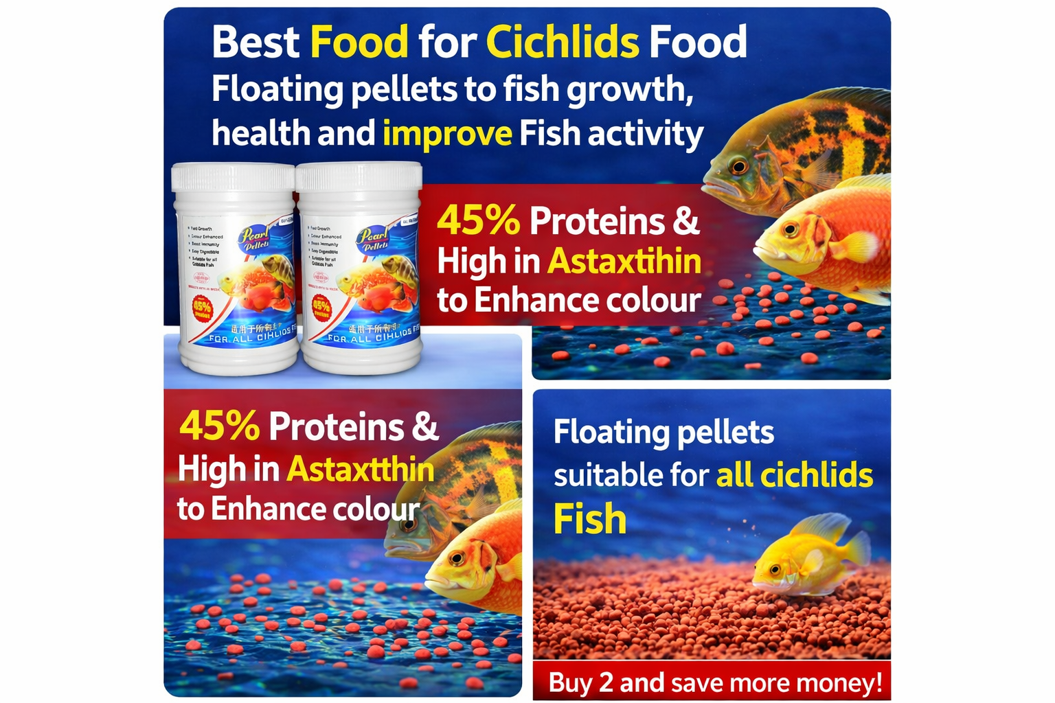 Perfect for all cichlid varieties including Flowerhorn, Oscar, African cichlids, and more.
