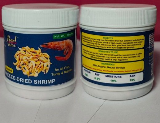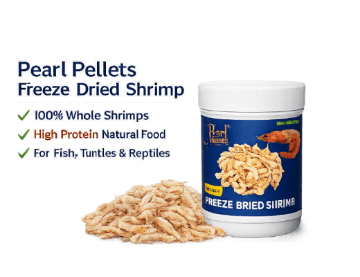 Pearl Pellets Freeze-Dried Shrimp is a premium quality natural feed made from 100% whole shrimp. Carefully freeze-dried to preserve essential nutrients, this protein-rich food supports healthy growth, vibrant colour development, and improved immunity in aquarium fish, turtles, and reptiles.