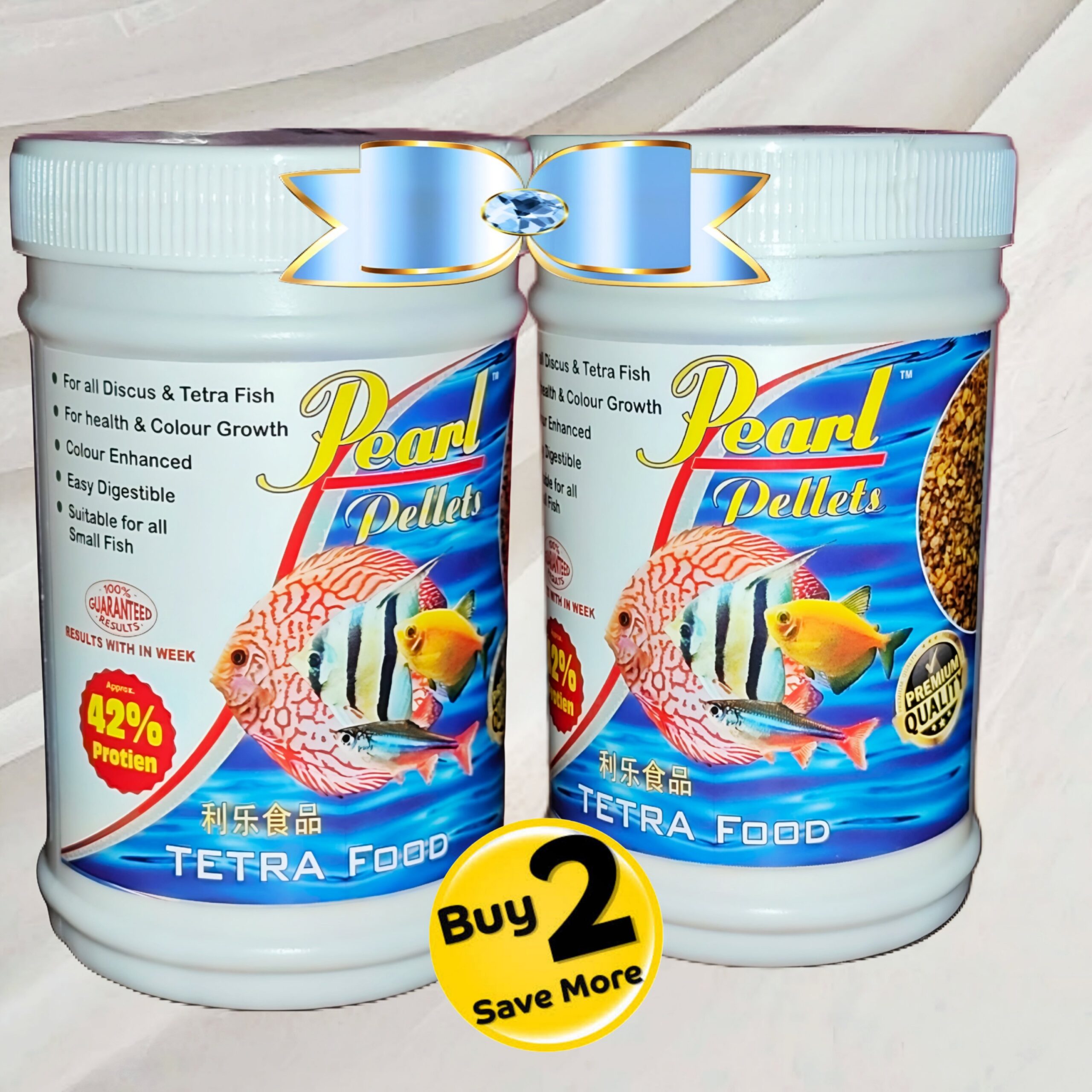 Pearl Pellets Tetra Fish Food is a high-quality slow sinking pellet specially formulated for small aquarium fish like Discus, Tetras, Neon fish, and Guppies. With 40% protein, it supports healthy growth, improved activity, and strong immunity.